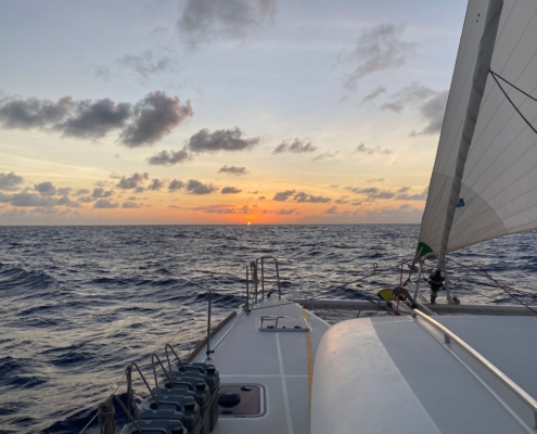 Etappe II: An Bord eines Segelboots geht es mit Zwischenstopp auf St. Helena über den Atlantischen Ozean in die Karibik (01/25 – 04/25)
