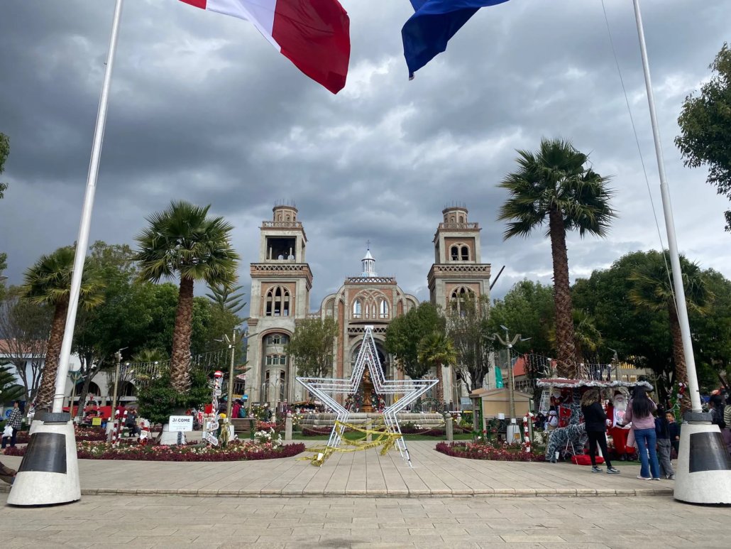 Die Lagunen müssen bis morgen warten – für heute stehen erstmal eine Handvoll Nachhilfeeinheiten auf dem Plan. Nachdem ich mir bei einer Bäckerei etwas zum Frühstück geholt habe, bunkere ich mich also in dem Hostelzimmer, das ich mal wieder ganz für mich allein habe, ein und gebe eine Mathestunde nach der nächsten. Als ich meinen Laptop am Nachmittag schließlich zuklappe, überschreitet meine Reisekasse zum ersten Mal in ihrer Geschichte die 1000€-Marke – das Ergebnis davon, dass ich die letzten anderthalb Monate, anstelle der bisher meist üblichen 5-8 Stunden pro Woche, oft 15+ Stunden gearbeitet hatte. Die verbleibende Zeit des Tages nutze ich, um die Huaraz zu erkunden. Was mir direkt auffällt, während ich durch die Stadt laufe, ist, wie viel günstiger als an der Küste hier wieder alles ist. Theoretisch sollte man meinen, dass in schwer zugänglichen Bergregionen mit schlechter Infrastruktur die Preise höher sind als in flachen Küstenregionen, wo es große Autobahnen und Häfen gibt. Doch in Peru ist genau das Gegenteil der Fall: Die Küste ist gute 50% teurer als das wirtschaftsschwache Hinterland. Neben den krassen Preisunterschieden fallen mir die Unmengen an Weihnachtsdeko auf. Egal ob in Supermärkten, auf den Straßen oder in dem Krimskrams-Laden um die Ecke, überall glitzert und blinkt es. Auf dem Plaza de Armas stehen ein großer Tannenbaum, eine Krippe und Plastik-Rentiere. Und dabei ist es noch nicht einmal Dezember!
