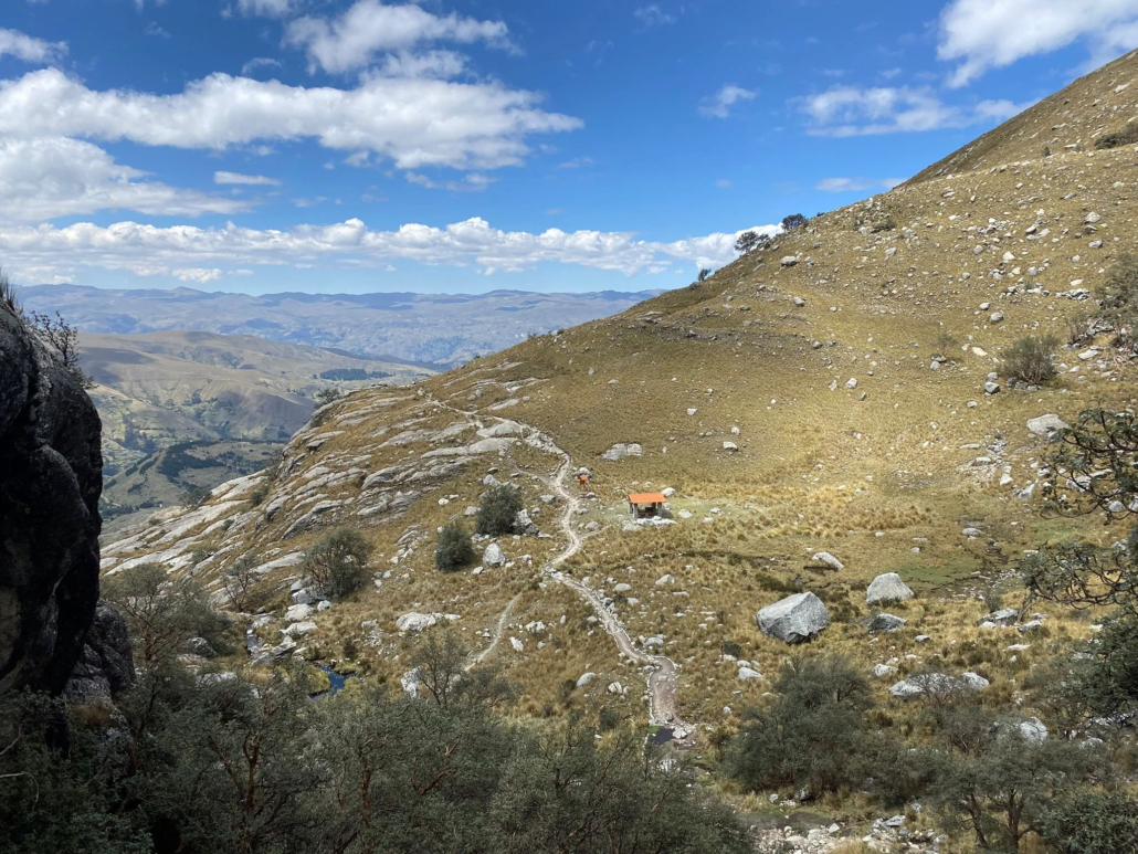 Das Spiel von gestern wiederhole ich heute noch einmal. Natürlich aber mit einem neuen Wanderziel – der „Laguna Ahuac“. Mehr Strecke, mehr Höhenmeter, weniger Wanderer – die Wanderung klang nach der perfekten Herausforderung! Schon die Fahrt zum Trailhead entpuppt sich als wahres Abenteuer: Das Collectivo ist bis zum Anschlag voll – eine korpulente Frau nimmt die Hälfte meines Sitzplatzes ein, ich habe meinen Daypack und einen großen Sack Reis auf dem Schoss. So geht es dann auf schlaglochreichen Schotterpisten und über aus Holzbrettern improvisierten Brücken in das Hinterland. Erst noch recht gemächlich startend nimmt der Wanderweg schnell an Steigung zu. In Serpentinen geht es immer weiter in die Höhe. Die Luft wird dünner, der Bewuchs immer weniger und die grüne Buschlandschaft verwandelt sich langsam in felsiges Gelände. Nach etwas mehr als zwei Stunden Wanderung erreiche ich schließlich die auf 4550 Metern gelegene Lagune. Eine kleine aus Felssteinen gebaute Schutzhütte bietet Unterschlupf vor dem eisig kalten Wind. Bald ziehen dunkle Regenwolken auf – das Signal zum Abstieg. Als ich es zurück zum Trailhead geschafft habe, beginnt es auch schon hinter mir zu donnern – perfektes Timing. Mit einem Collectivo geht es zurück ins Stadtzentrum und von dort in mein Hostel, wo mich eine heiße Dusche und ein Webentwicklungsprojekt, dem ich mich am Abend widme, erwarten.