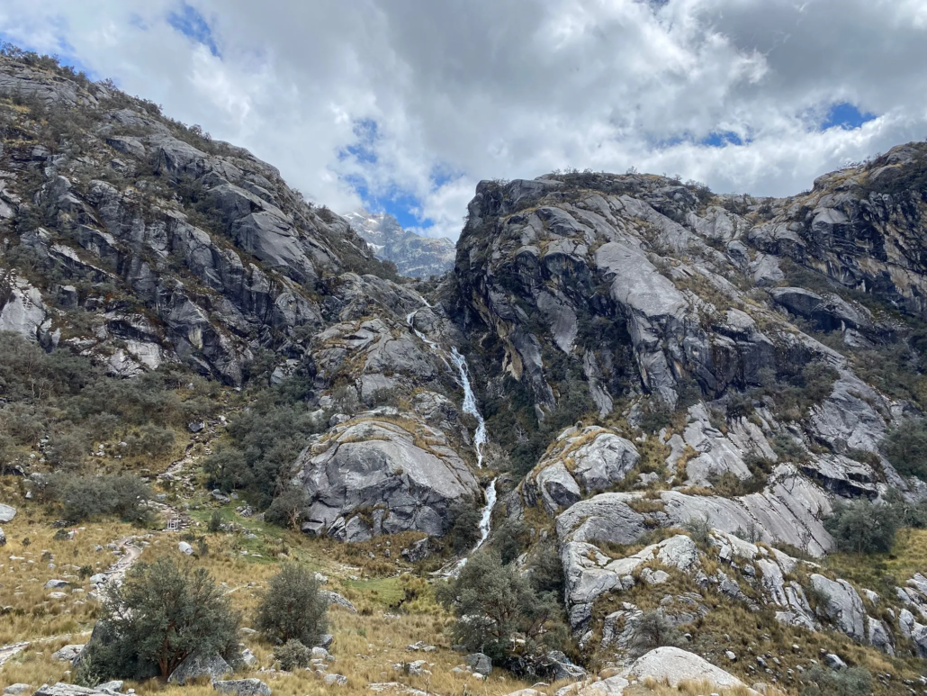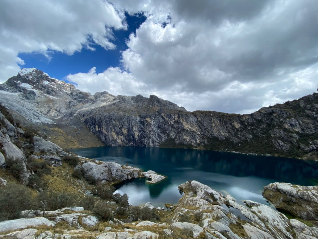 Früh am Morgen verlasse ich das Hostel, laufe ins Zentrum, kaufe mir noch ein paar Brötchen zum Frühstück und mache mich dann auf die Suche nach den nach Pitec fahrenden Collectivos. Eine Dreiviertelstunde fährt der schwarze Minivan auf kurvigen schmalen Wegen in die Berge, bis wir um kurz vor neun schließlich den „Laguna Churup“-Trailhead erreichen. In fünf Stunden würde man mich hier wieder abholen. Bis dahin wollte ich zu der vier Kilometer und 800 Höhenmeter entfernten Lagune und wieder zurück wandern – unmittelbar mache ich mich auf den Weg. Stufen führen zwischen zwei Lärchenreihen einen Grat entlang steil in die Höhe. Nachdem ich das Rangerhäuschen passiert und die Nationalpark-Gebühr bezahlt habe, wird der Weg schmaler und führt neben einem Wasserfall entlang einen Hang hinauf. Vereinzelt sind Metallketten und Seile angebracht, die man zur Hilfe nehmen muss, um steilere Felsabschnitte hochzukommen. Nach anderthalb Stunden erreiche ich erschöpft den tiefblauen und spiegelglatten Bergsee. Im Hintergrund ragt – leider in Wolken gehüllt – der schneebedeckte Gipfel des Churup Gletschers dem Himmel entgegen. Ich genieße ein wenig die Szenerie und erhole mich, bevor ich noch einen Abstecher zu einer zweiten deutlich kleineren Lagune mache. Eine halbe Stunde vor der vereinbarten Abholzeit bin ich zurück am Parkplatz, der Minivan lässt allerdings noch eine ganze Weile auf sich warten. Als er 20 Minuten verspätet schließlich auftaucht, teilt der Fahrer mir mit, dass wir noch eine ganze Stunde auf ein paar andere Wanderer warten müssten, bevor wir uns auf den Rückweg in die Stadt machen könnten. So ist es bereits später Nachmittag, bis ich zurück in Huaraz bin. Erschöpft schleppe ich mich zu meinem Hostel, gehe noch etwas essen und tippe den Abend über noch ein paar Zeilen an meinem Blog, damit dieser morgen früh pünktlich online gehen kann.