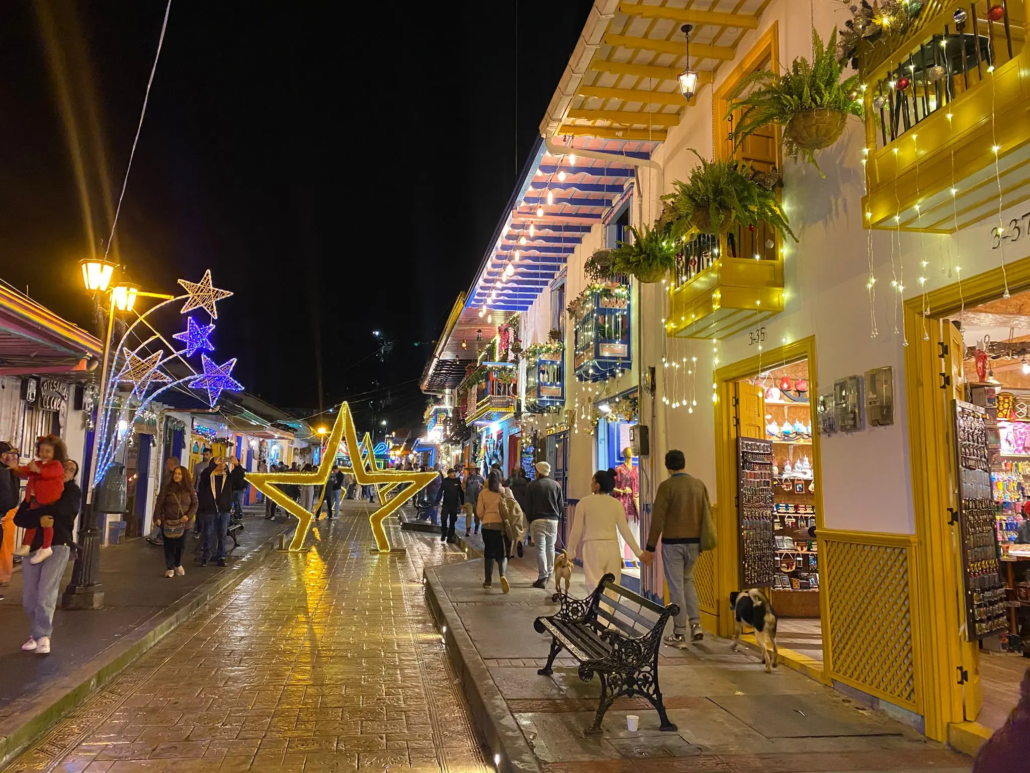 Während ich am Morgen meine Sachen packe, gucke ich mir die Videoaufnahme des gestrigen Weihnachtsgottesdienstes an, den mein Vater für mich aufgenommen hatte, und mache mich anschließend auf den Weg zum Busbahnhof. Von dort geht es nach Cali. Zwischen Cali, Bogotá und Medellín spannt sich das kolumbianische Kaffeedreieck auf – eine immergrüne Hügellandschaft, in der sich die Kaffeeanbaugebiete des Landes befinden. Mit dem Express-Bus geht es nach Armenia, einer der größeren Städte der Region, und von dort mit dem öffentlichen Nahverkehr weiter in den kleinen Ort Salento. Als ich nach insgesamt knappen neun Stunden Busfahrt schließlich am Ortseingang von Salento aussteige, ist es bereits am Dämmern. Auf einem Hügel nur wenige Straßen vom Zentrum des Ortes entfernt finde ich mein Hostel. Als ich später am Abend noch einmal rausgehe, um etwas zu essen, stelle ich schnell fest, wie unglaublich touristisch Salento ist – es wirkt fast als bestünde der Ort nur aus Hotels und Restaurants. Lebt hier auch tatsächlich jemand? Ein preiswertes Cena-Menü, wie ich es sonst oft aß, zu finden stellt sich jedenfalls als schwierig heraus.