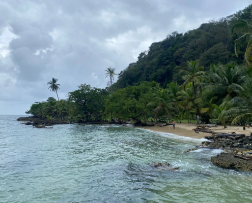 Vierzehn Stunden hatte ich geschlafen – oder es besser gesagt es versucht. Die Nacht über war ich immer wieder aufgewacht, es war fürchterlich heiß gewesen und meine Kopfschmerzen hatten nicht nachlassen wollen. Pünktlich um neun fängt die im Gemeinschaftsraum stehende Stereo-Anlage an zu blinken – der Strom ist da! Eine Stunde später beginne ich mit dem Unterrichten. Zwar fühlte ich mich nicht wesentlich besser als gestern Nachmittag, dennoch hatte ich die Nachhilfestunden nicht absagen wollen. Die ersten beiden Stunden laufen gut, doch nach der dritten bin ich merklich am Ende: Mein Kopf pocht, die Temperatur meiner Stirn lässt auf Fieber schließen. Ich schlafe erstmal eine Stunde, bevor ich mich aufraffen kann in den Ort zu laufen, um mich dort mit Wasser und Obst – zum Kochen fehlte mir die Kraft – einzudecken. Den restlichen Tag über liege ich erschöpft und zu nichts anderem fähig in der Hängematte und ruhe mich aus. Mein Kopf läuft währenddessen Amok: Was, wenn ich nicht einfach nur ein wenig krank war, sondern mich mit einer gefährlichen Tropenkrankheit infiziert hatte? Der Darién Gap ist immerhin Hochrisikogebiet für das Dengue-Fieber. Die medizinische Versorgung in Capurganá war katastrophal, das nächste Krankenhaus mindestens drei Stunden Bootsfahrt entfernt. Am Abend fragt Anabela mich, ob ich Lust hätte eine Runde spazieren zu gehen. Ein wenig Bewegung und frische Luft schaden bestimmt nicht und so erhebe ich mich aus meiner Hängematte und wir laufen langsameren Schrittes durch den Ort und weiter die Küste entlang bis zum Playa Verde, einem kleinen idyllischen Strand etwas außerhalb von Capurganá.