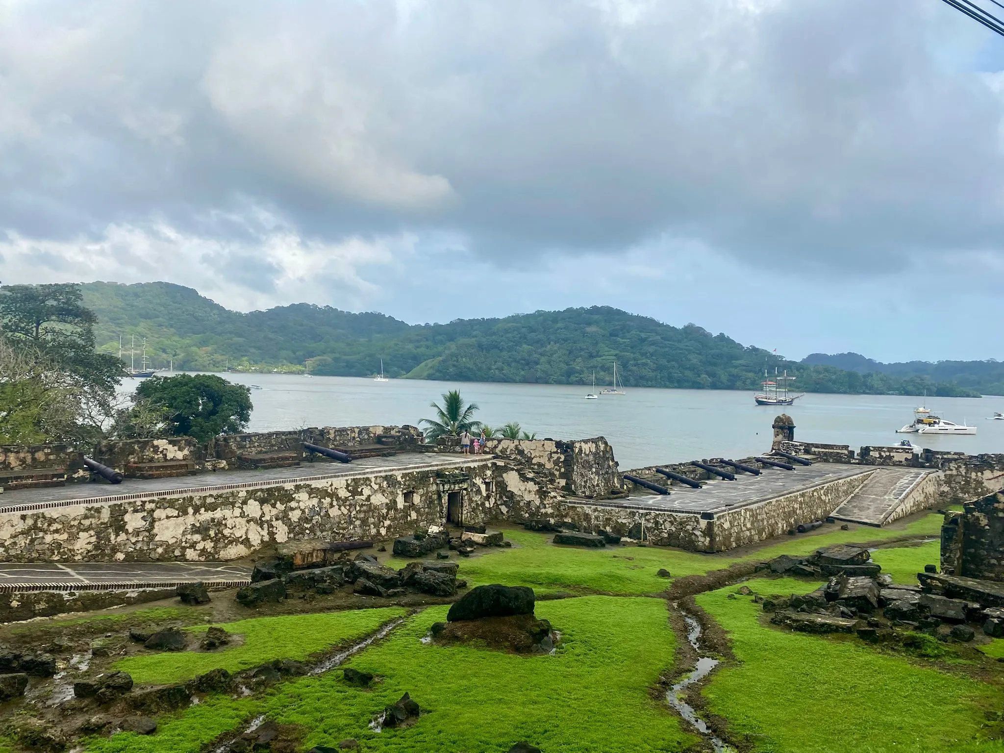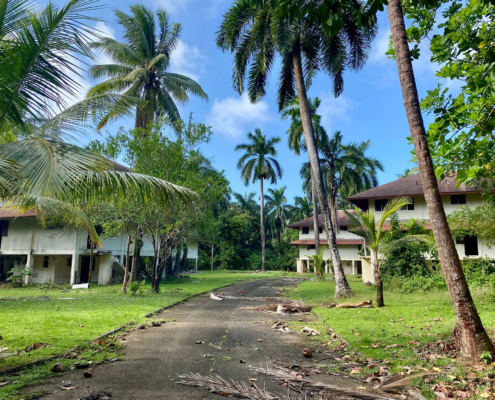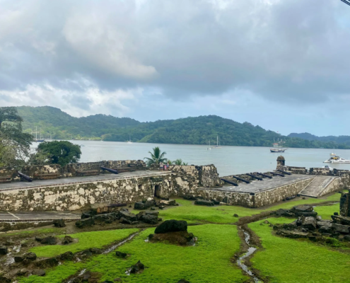 Am späten Vormittag mache ich mich auf den Weg zum Busterminal und fahre mit einem Bus wieder zurück auf die Karibikseite, nach Colon. Von Colon aus trampe ich nach Shelter Bay, einem abgelegenen Yachthafen am Eingang des Panamakanals. Hier wollte ich mich morgen mit Hans, dem deutschen Segler, treffen und zugleich war der Hafen der Ort, von dem ich mir in den nächsten Wochen (oder Monaten) die besten Chancen ausrechnete, ein Boot über den Pazifik zu finden. Die Marina stimmt mich auf den ersten Blick positiv: Kein Zaun, keine Zugangskontrollen, ich kann frei herumlaufen, keiner der Stege ist kameraüberwacht. Es gibt einen Pool, ein Restaurant, einen kleinen Shop, eine Wäscherei, Sanitäranlagen und alles andere, was das Herz begehrt – der Traum eines Bootshitchhikers! Noch etwas macht die Shelter Bay Marina besonders: Sie liegt auf dem Gelände eines ehemaligen US-Militärstützpunktes. So kommt es, dass sich in einem Waldstück, etwa zehn Gehminuten vom Hafen entfernt, alte verlassene Häuser befinden – der perfekte Ort, um hier zu campen! Während ich die leerstehenden Gebäude erkunde, treffe ich auf zwei junge Deutsche, die bereits seit einigen Tagen hier campieren. Cedric und Marcel kommen aus NRW, stellen sich mir als gläubige Christen vor und hatten ihre Reise vor einem Jahr in Kanada gestartet. Nachdem sie durch die USA und ganz Mittelamerika getrampt waren, suchten sie nun nach einem Segelboot, das sie nach Südamerika mitnahm. Offenherzig laden sie mich zum Mittagessen ein, dass sie gerade gekocht hatten: Ungesalzene Nudeln mit Fertig-Tomatensoße – das kenn ich doch irgendwoher! Später setzen wir uns gemeinsam in die Marina und tauschen weiter unsere Geschichten und Erfahrungen aus. Cedric und Marcel sprechen nebenbei alle vorbeilaufenden Segler an, um nach einem Lift Richtung Kolumbien zu fragen. Ich halte mich vorerst noch zurück. Mit meiner Bootssuche wollte ich erst Ende nächster Woche beginnen, nun ging es mir erstmal darum, die Marina zu scouten – doch nach allem, was ich heute gesehen hatte, war ich höchst zuversichtlich gestimmt!