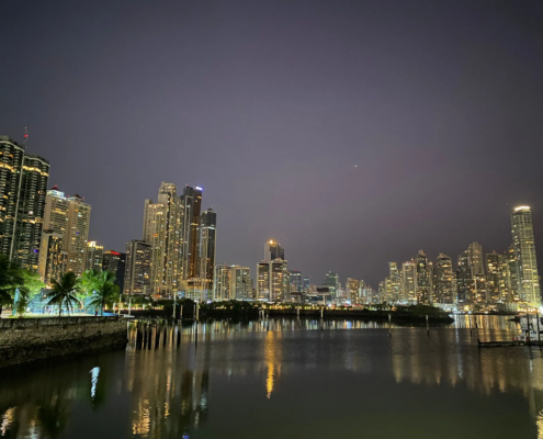Unmittelbar nach dem Aufstehen positioniere ich mich an der Straße und warte darauf, dass die ersten Autos des Tages den Ort verlassen. Ich brauchte dringend Zivilisation, einen Ort, wo ich ankommen, meinen Körper etwas Ruhe gönnen und mich sortieren könnte, bevor ich in das Kapitel Bootssuche startete. Nach zwanzig Minuten sammelt mich der Fahrer eines SUVs ein, der auf dem Weg nach Colon ist. Anderthalb Stunden fahren wir auf einer schmalen Straße die Küste entlang, bis wir die Stadt am nördlichen Ende des Panamakanals erreichen. Von dort fahre ich, nachdem das Trampen nicht wirklich funktioniert, mit einem Bus nach Panama City. Bereits aus der Ferne ist die von gläsernen Wolkenkratzern dominierte Skyline der Metropole sichtbar. Gegen Mittag erreiche ich schließlich mein Hostel. Angekommen – Eine weitere große Etappe – Südamerika – lag hinter mir! Erschöpft lege ich mich auf mein Bett. Einige Stunden später klingelt mein Telefon. „Wie kommst du voran? Schaffst du es Montagmorgen hier zu sein?“ Vor einigen Tagen hatte mich ein deutscher Segler kontaktiert, er brauchte Hilfe, um sein Boot durch den Panamakanal zu manövrieren. Eigentlich hatte ich erst einmal eine Handvoll Tage in Panama City erholen wollen – in Ruhe ankommen – bevor ich mich jeglichen Bootsthematiken widmete, doch die Gelegenheit durch den Panamakanal zu fahren reizte mich schon sehr. So sage ich schließlich doch zu!