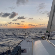Zum ersten Mal ist unsere Crew an diesem Abend vollständig – sobald alle Einkäufe gemacht waren und der Wind günstig stand, könnte es losgehen!