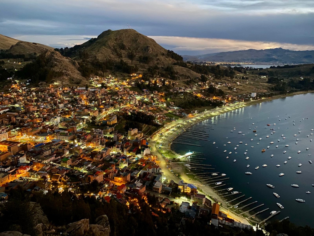 Der Montag entwickelte sich mehr und mehr zu meinem Haupt-Nachhilfetag – inzwischen waren es vier Schüler, die jeden Montag ihre Stunden nahmen. Den Vormittag über bin ich also erst einmal damit beschäftigt zu unterrichten. Als ich meinen Laptop zuklappe, ist es schon zu spät, um noch zur „Isla del Sol“. Nur dafür noch einen weiteren Tag in diesem kleinen Kaff dranhängen, wollte ich allerdings auch nicht – so kam ich am Ende doch nicht dazu die Insel zu besuchen. Am Abend steige ich ein erneut auf den „Cerro el Calvario“. War ich dort vor zwei Tagen bei Sonnenuntergang noch fast allein, sind heute eine ganze Handvoll Leute für das Naturspektakel auf den Hausberg geklettert. Auf dem Rückweg lerne ich so eine kleine Gruppe deutscher Backpacker kennen.