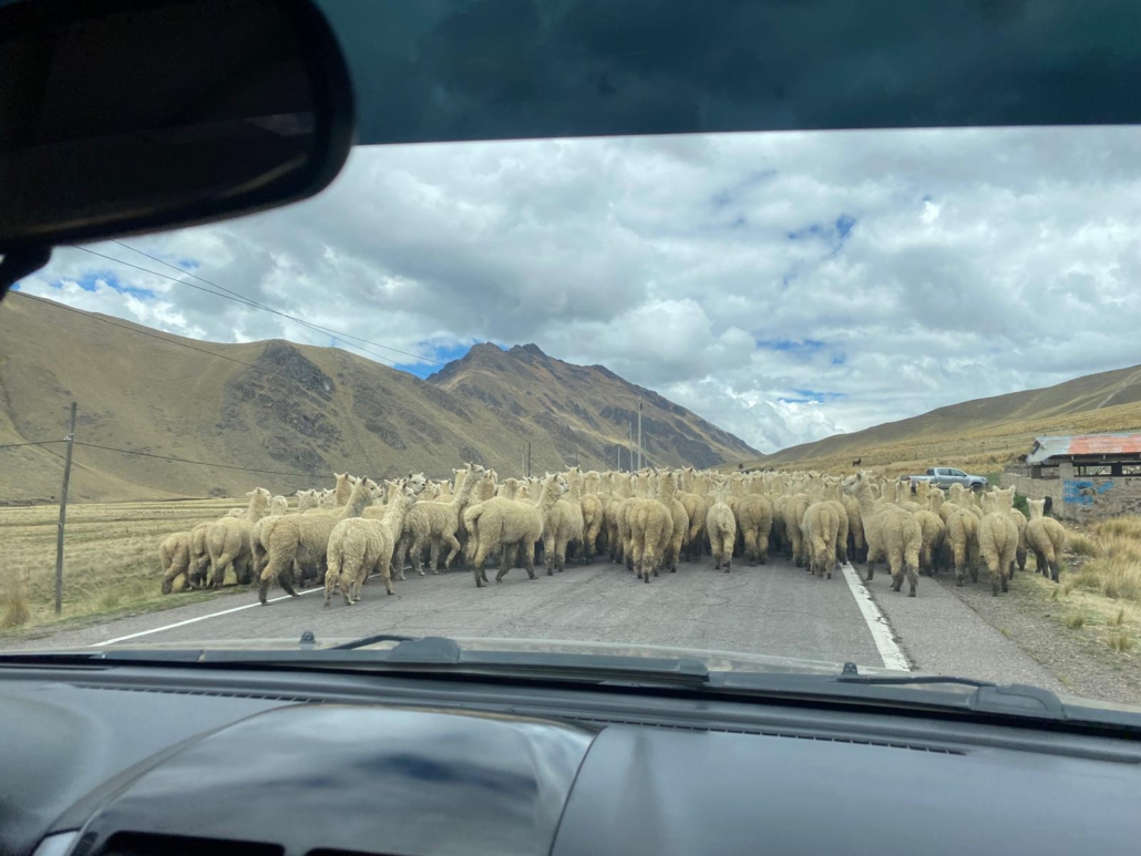 Der schon in den frühen Morgenstunden deutlich zunehmende Verkehr auf der Straße weckt mich. Langsam packe ich mein Zelt zusammen und positioniere mich, darauf hoffend heute mehr Erfolg als gestern zu haben, gegenüber der Tankstelle auf dem Straßenbankett. Tatsächlich hält nach knappen 15 Minuten ein Kleinlastwagen und nimmt mich zumindest in die nächste Ortschaft mit. Dort gelingt es mir nicht nur endlich meine SIM-Karte zu aktivieren – ich hatte diese zwar bereits gestern aufgeladen, doch um mit dem aufgeladenen Guthaben ein Datenpaket zu kaufen, brauchte man bereits Internet – auch gab es dort eine große Kreuzung, an der ein Großteil des so oder so nicht in meine Zielrichtung fahrenden Verkehrs abbog. Nach einer halben Stunde sammelt mich der junge Fahrer eines SUVs ein, der auf dem Weg nach Cusco ist. Einige Stunden fahren wir durch die weiten Berglandschaften des Altiplanos. Obwohl es erst acht Uhr am Morgen ist, besteht mein Fahrer darauf mich zu einer Lammkeule mit Kartoffeln einzuladen, als wir Pucara durchqueren – es gibt schlimmere Dinge, die man frühstücken kann! Nach vier Stunden Fahrt lasse ich mich schließlich etwa 90 Kilometer vor Cusco an einer Kreuzung absetzen, von welcher es mit einem Collectivo die letzten zwanzig Kilometer zu meinem Zielort, Sangarara, geht. In dem kleinen Dorf startet der Trail zu der Inka-Festung Waqrapukara, zu der ich mich morgen auf den Weg machen wollte. Den restlichen Tag über setze ich mich ins Rathaus der kleinen Siedlung – dort gibt es Steckdosen und guten Mobilempfang – und tippe fleißig an meinem Blog. Gegen Abend laufe ich einige Kilometer aus der Stadt heraus und schlage mein Zelt für die Nacht auf einer Wiese auf – gerade rechtzeitig, bevor es zu regnen beginnt.